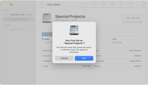 Les deux exemples les plus célèbres sont CHKDSK (sur Microsoft Windows) et Utilitaire de disque (sur Mac OS). Mais ces deux outils ne fonctionneront que si votre ordinateur peut reconnaître votre disque dur externe lorsqu'il est connecté. Malheureusement, et bien que ces outils intégrés soient utiles dans certaines circonstances comme la maintenance régulière, ils aggravent parfois les dégâts sur les supports stockage corrompus ou défaillants et peuvent entraver les tentatives de récupération ultérieures.