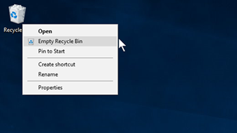 Bilde: Høyreklikk-menyen i en Windows-papirkurv (Microsoft.com)